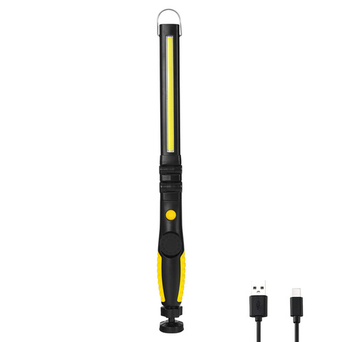 Luz DE TRABAJO LED COB recargable por USB con soporte Base magnética potente y gancho de luz LED blanco amarillo rojo