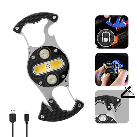 נייד עבודת הוביל אור lightmini פנס Keychain מגנטי cob עם כלי תיקון חותך חגורת בטיחות